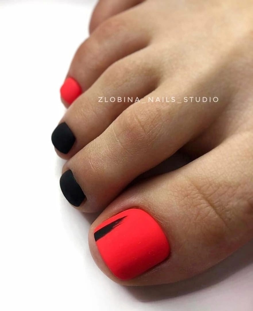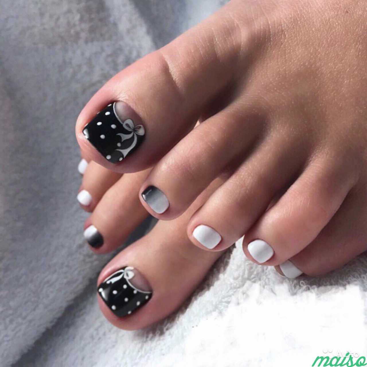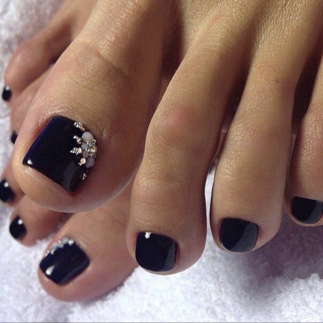 Еще один классический вариант для создания яркого стильного педикюра. Многим кажется, что маникюр и педикюр в этом оттенке будут слишком мрачными. Но спешим вас уверить, черный оттенок популярен даже в летние деньки. Это не просто красиво и ярко, но еще и очень практично. Все дело в том, что, например, летом мы носим открытую обувь. И светлые лаки очень быстро накапливают на своей поверхности загрязнения: пыль, грязь, песок и так далее. А вот черному цвету это не грозит. Вы смело можете сделать черный педикюр и отправляться в отпуск на море. Кроме того, черный цвет прекрасно подходит к любому цвету обуви.