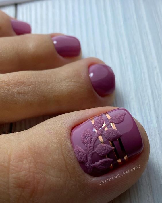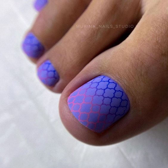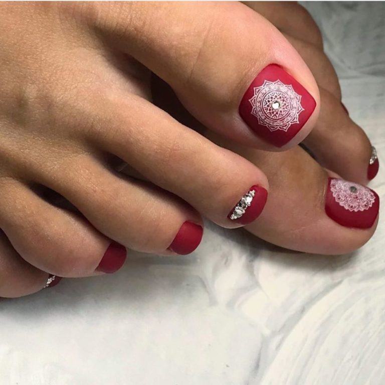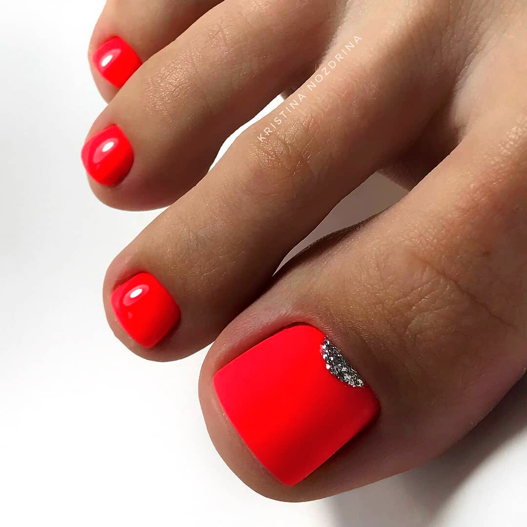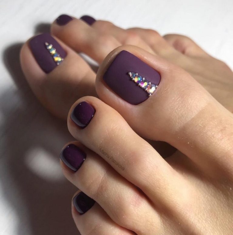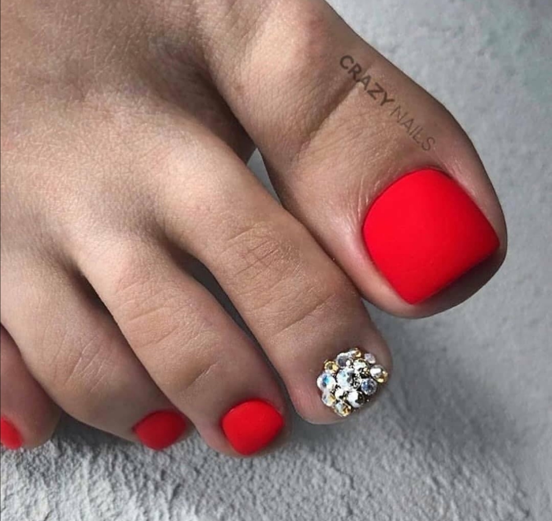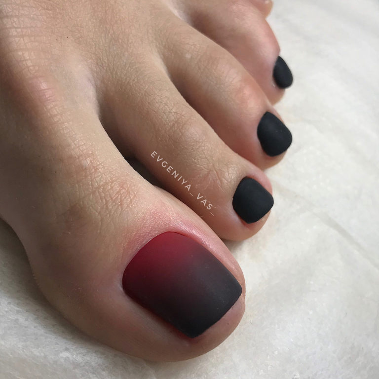 Матовая текстура хороша в маникюре. Так почему бы не использовать ее в педикюре. Это очень интересная техника, которая позволяет заменить глянцевое блестящее покрытие на матовое бархатистое. Педикюр от этого не станет менее ярким, но будет более элегантным и стильным.