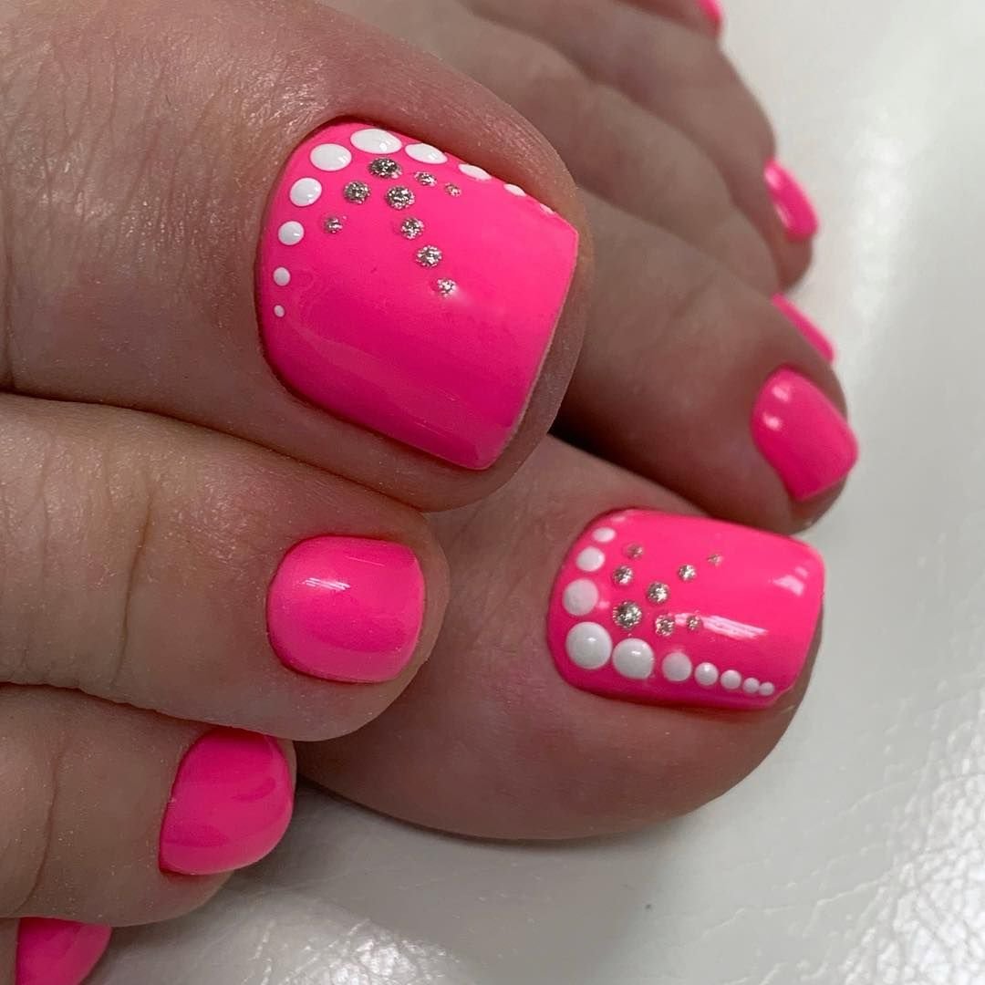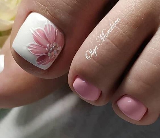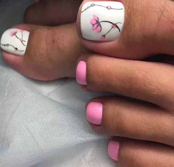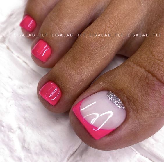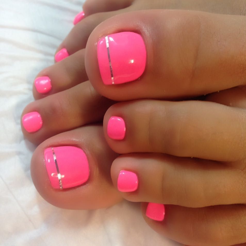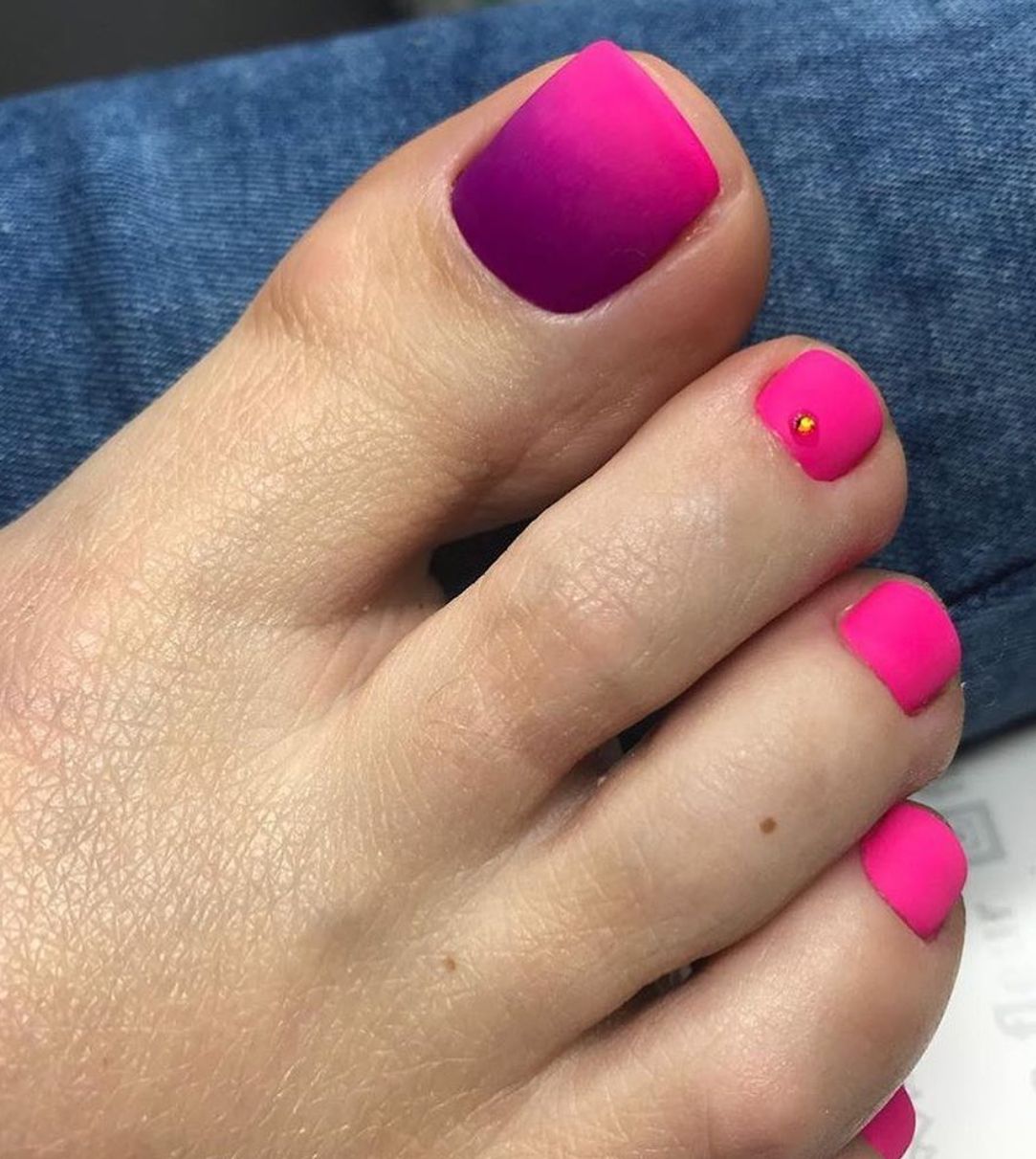 Не менее разнообразная палитра есть и у розового цвета. В этом сезоне мы предлагаем обратить внимание не на романтично и пастельные оттенки она яркие. Например, фуксия или viva magento. Мастера маникюра утверждают, что розовой подходит практически всем оттенкам кожи. И вам не придется долго и мучительно подбирать свой оттенок. Розовый отлично сочетается с лаконичными рисунками в стиле минимализм, а также слайдерами с цветочным принтом. Если вы сторонница классики, то яркий педикюр можно сделать, сочетая технику френч и добавив блестящих акцентов.