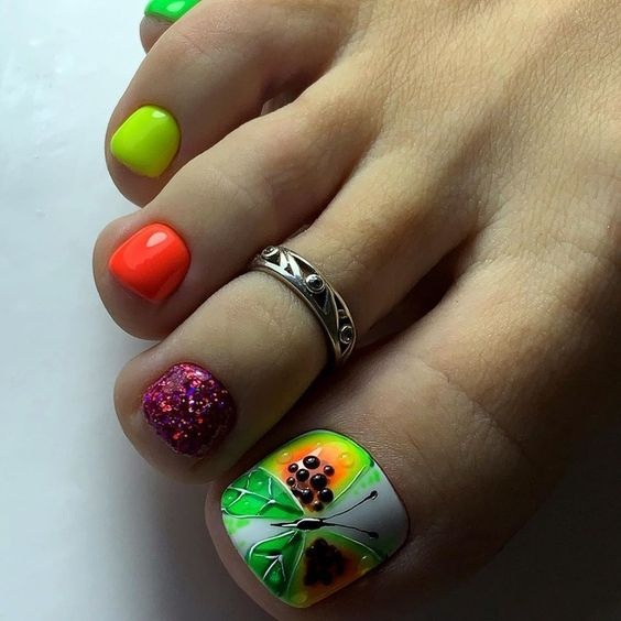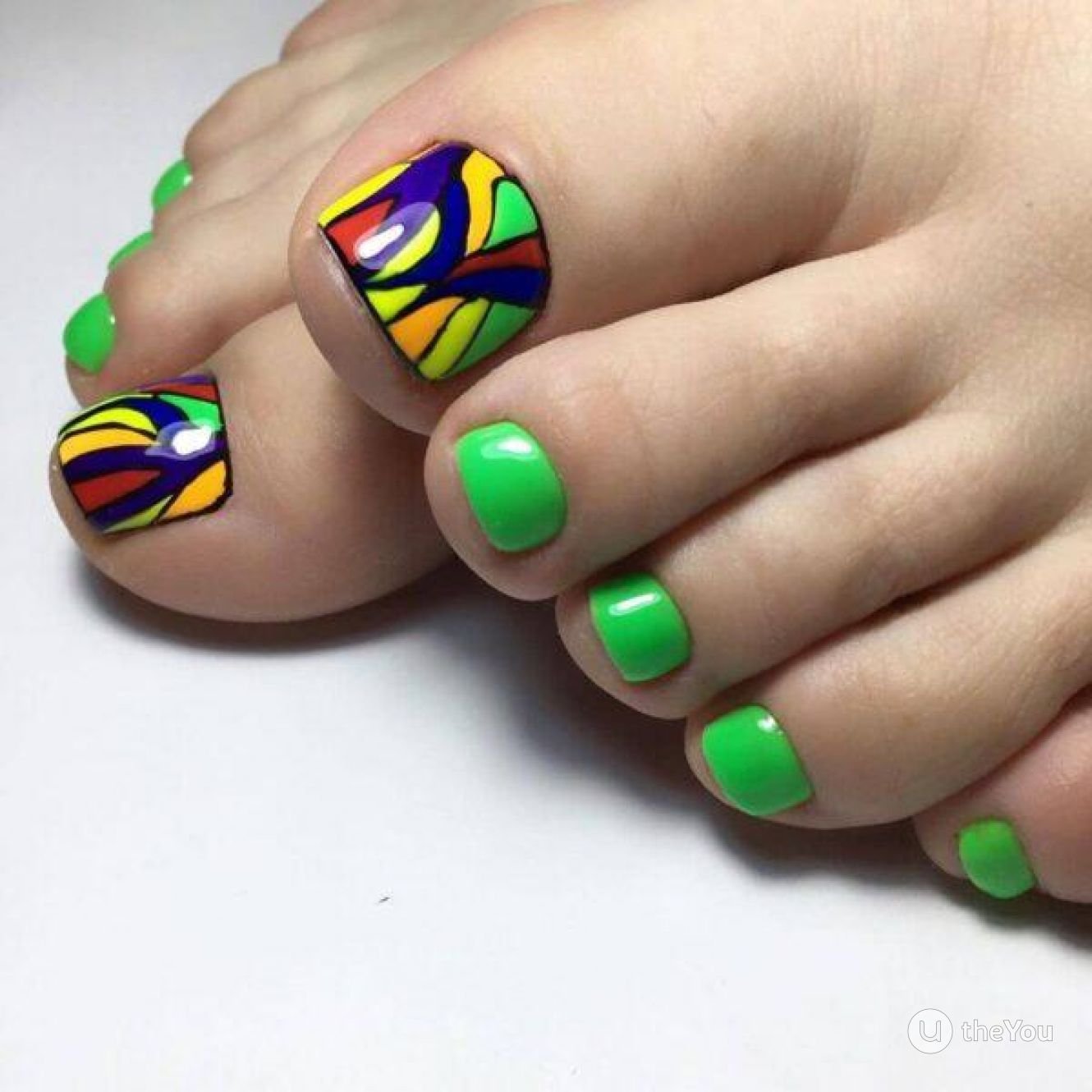 А теперь поговорим немного о том, каковы тренды яркого педикюра в этом сезоне. Ведь всегда проще выбрать один из самых удачных вариантов, о которых говорят мастера нейл арта. Мы уже отмечали, что для создания яркого педикюра понадобится яркая база. И выше перечислили цвета, которые стоит обязательно использовать. Конечно, это не все оттенки, которые считаются модными в этом сезоне. Вы всегда можете выбрать тот, который нравится или подходит именно вам. А теперь поговорим более конкретно про варианты дизайна для яркого педикюра.