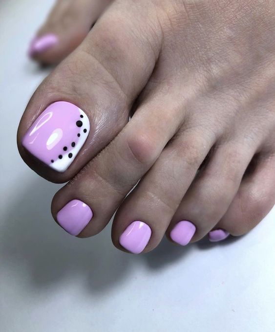 Совет: особое внимание рекомендуем обратить на рисунки в стиле минимализм. Это возможно сделать ваш педикюр очень уникальным, но в тоже время элегантным и сдержанным. Достаточно небольшого акцента на одном пальце, чтобы придать образу стиль. Это может быть сердечко или точки, самолетик, облачко и так далее.