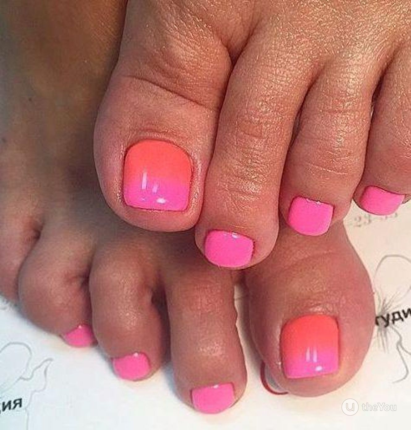 Эта техника с французского языка переводится как затемнение. То есть мастер растягивает по ногтевой пластине цвет, начиная от светлого и переходя к более темному. Это отличное решение, если вы хотите сделать простой, но очень яркий педикюр. Педикюр в этой технике отлично подходит к любому сезону. Кроме того, такой дизайн относится к тематически нейтральным. А это значит, он отлично впишется в любой образ.