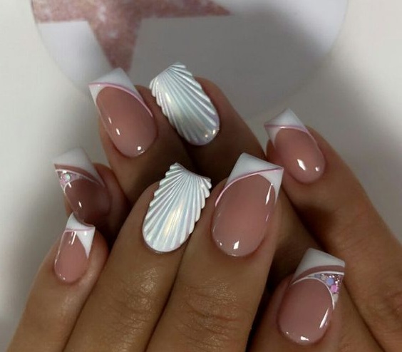 - белая линия. Вместо традиционной белой полоски на кончиках ногтей, используется нежно-жемчужный оттенок. Это добавляет нотку утонченности и оригинальности традиционному французскому маникюру;