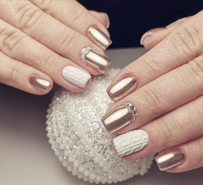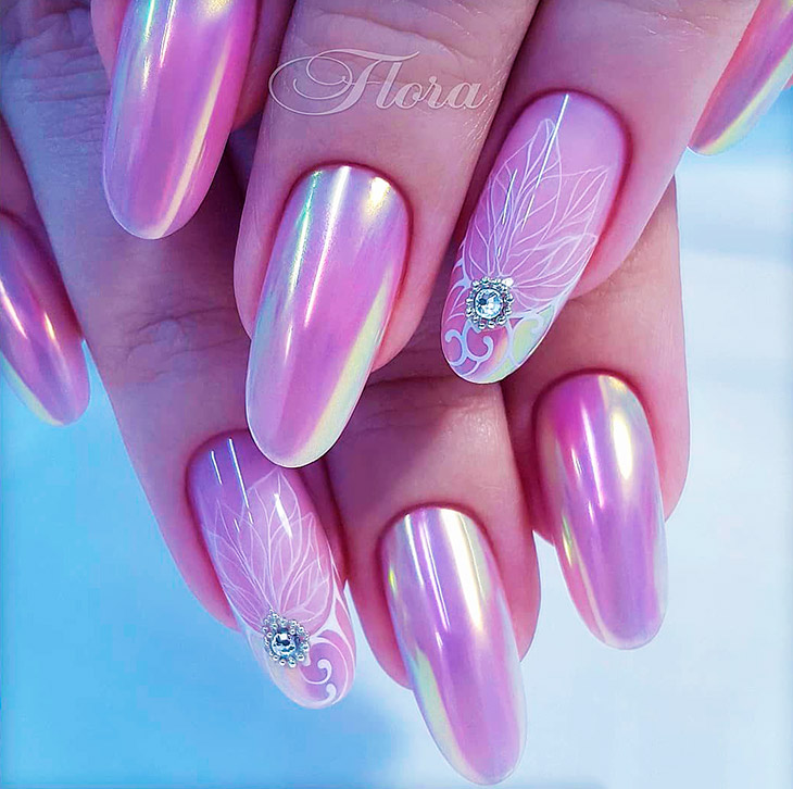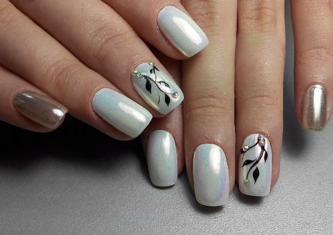 Жемчужное покрытие — самодостаточно само по себе. Не стоит забивать элегантный дизайн стразами, рисунками и лепкой. Но иногда хочется сделать более интересный вариант нейл-арта. Предлагаем вам варианты, когда сочетание техник с жемчужными оттенками лака не принесет разочарования и не сделает образ дешевым и пошлым.