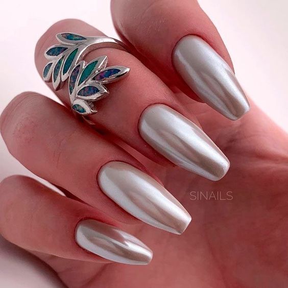 Экспериментируйте, творите и создавайте ошеломляющий жемчужный маникюр для ваших длинных ногтей!