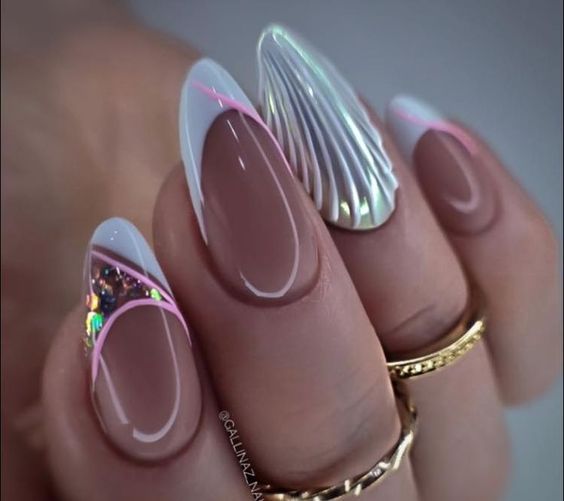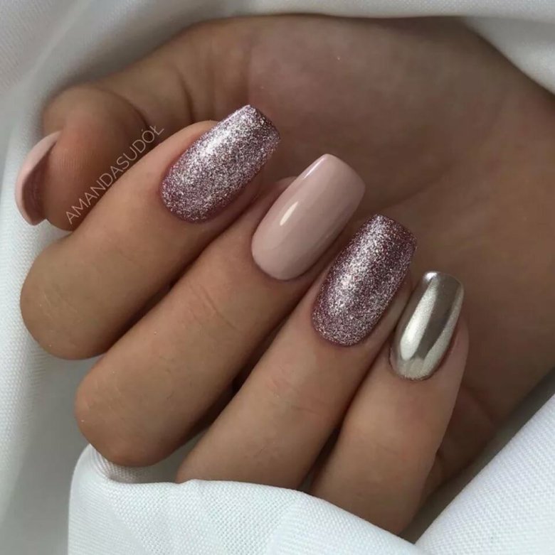 - комбинированный дизайн. Создайте уникальный дизайн, комбинируя жемчужные блестки с другими элементами, такими как френч, акцентные узоры или миниатюрные цветочные детали;