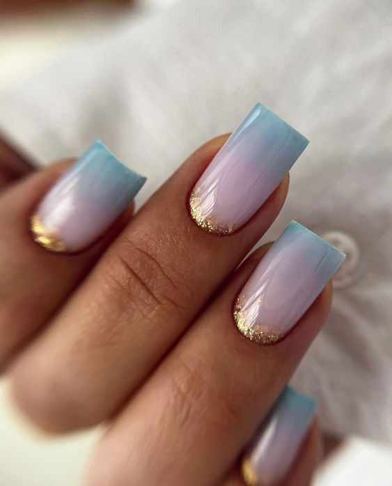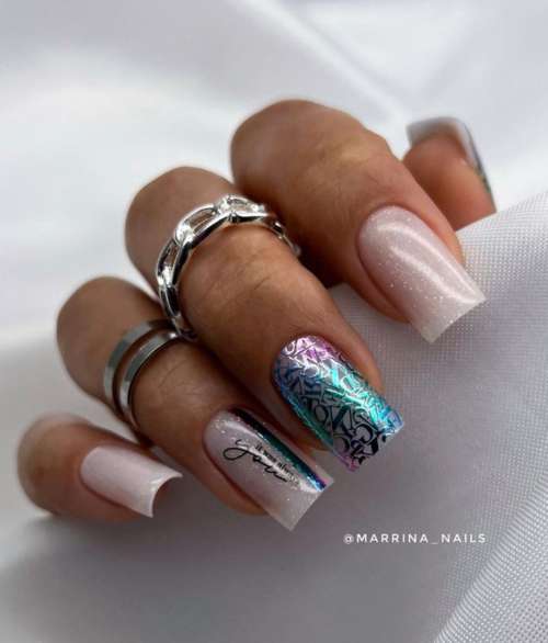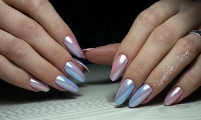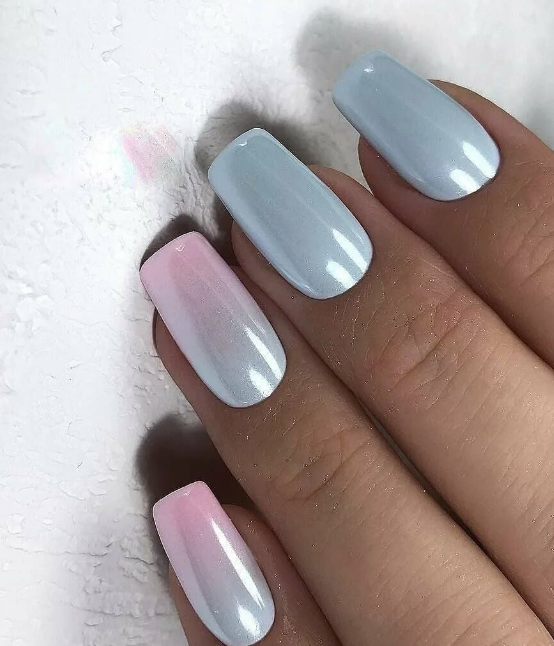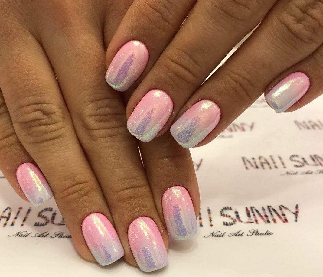 - омбре-эффект. Один из интересных вариантов — это создание омбре-эффекта с перламутровыми оттенками. Плавный переход между цветами придаст маникюру гармоничность;