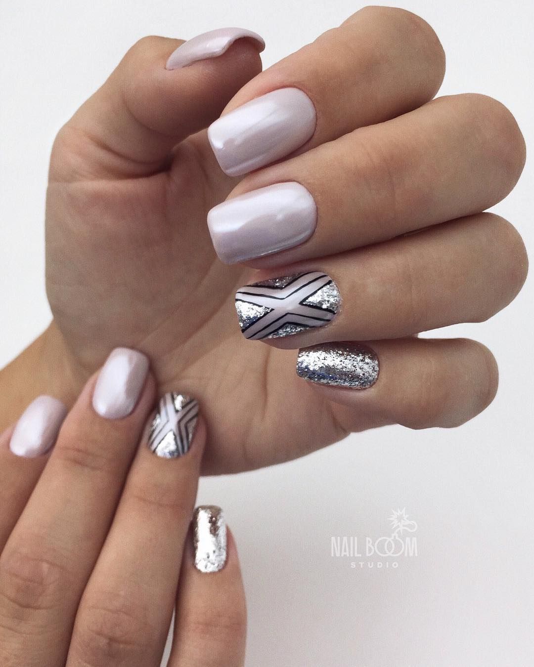 - деликатные узоры. Используйте жемчужные блестки для создания деликатных узоров на ногтях, например, нежных полосок, волнистых линий или геометрических фигур;