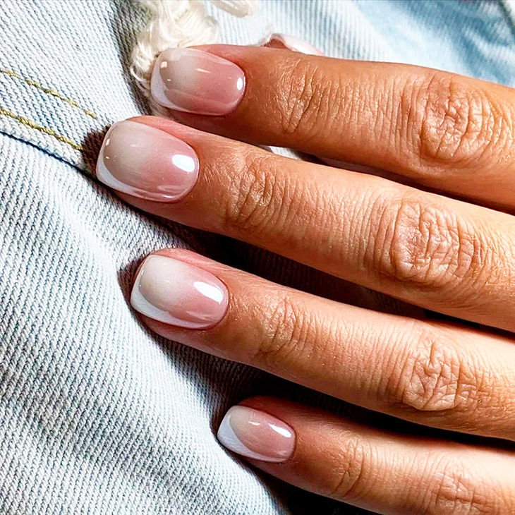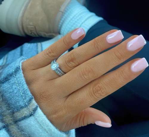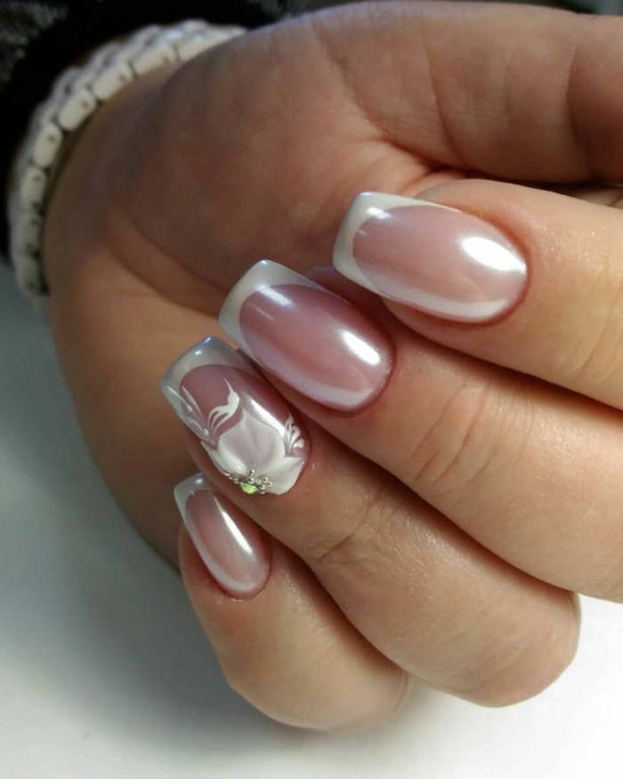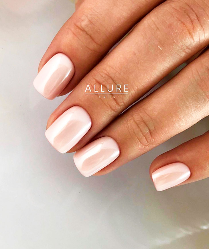- основа. Френч в жемчужном цвете обычно начинается с натуральной или светло-розовой основы, которая создает эффект натуральных ногтей;