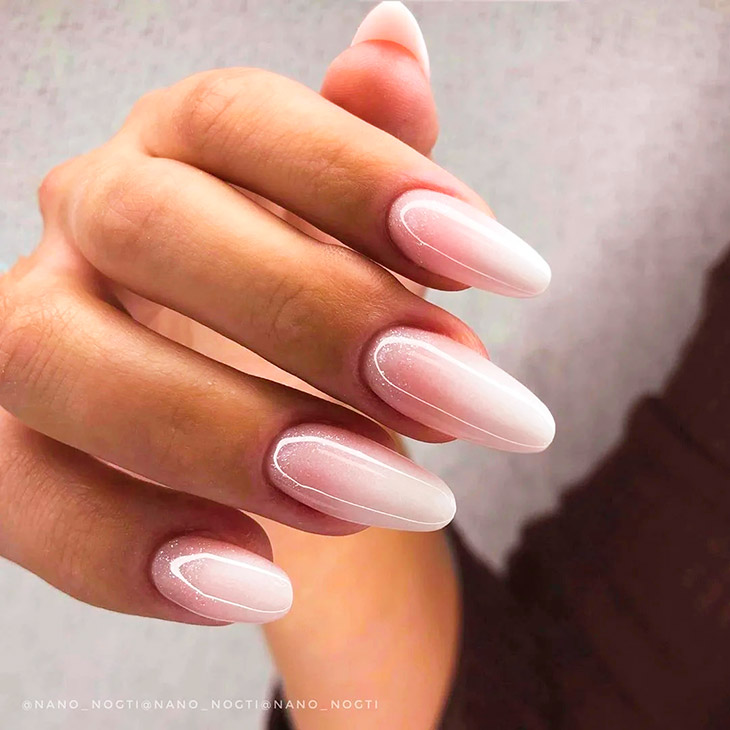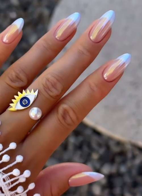 Омбре в жемчужных тонах — это роскошный и нежный стиль маникюра, в котором цветовой градиент создает эффект перелива жемчуга. Этот дизайн придает ногтям изысканность и загадочность, идеально подходящую для особых событий или просто для придания романтической ноты вашему образу.