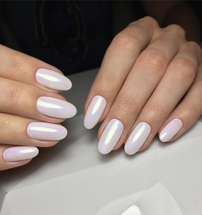 - модный тренд. Жемчужные оттенки и текстура стали популярным трендом в мире маникюра и моды.