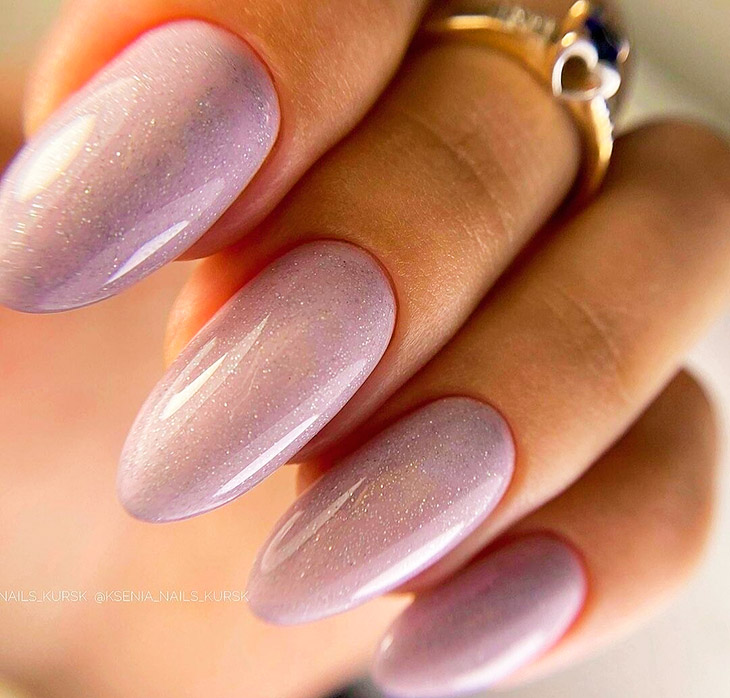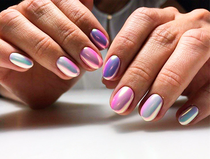 Вы можете использовать перламутровый лак выбранного оттенка. Но мы предлагаем сделать более уточненный и глубокий маникюр, используя жемчужную втирку.