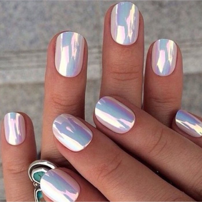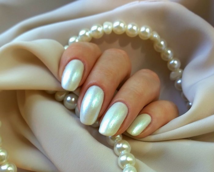- перламутровый лак. Для создания эффекта жемчуга используйте перламутровые лаки. Они придают ногтям мягкий блеск и переливы, напоминающие настоящие жемчужины;
