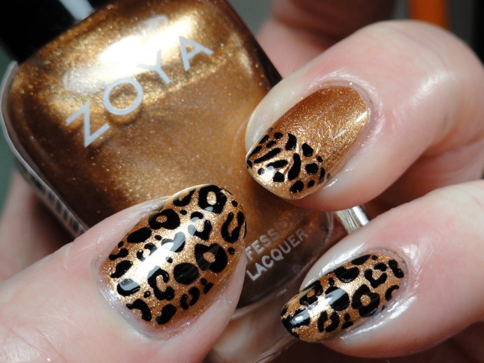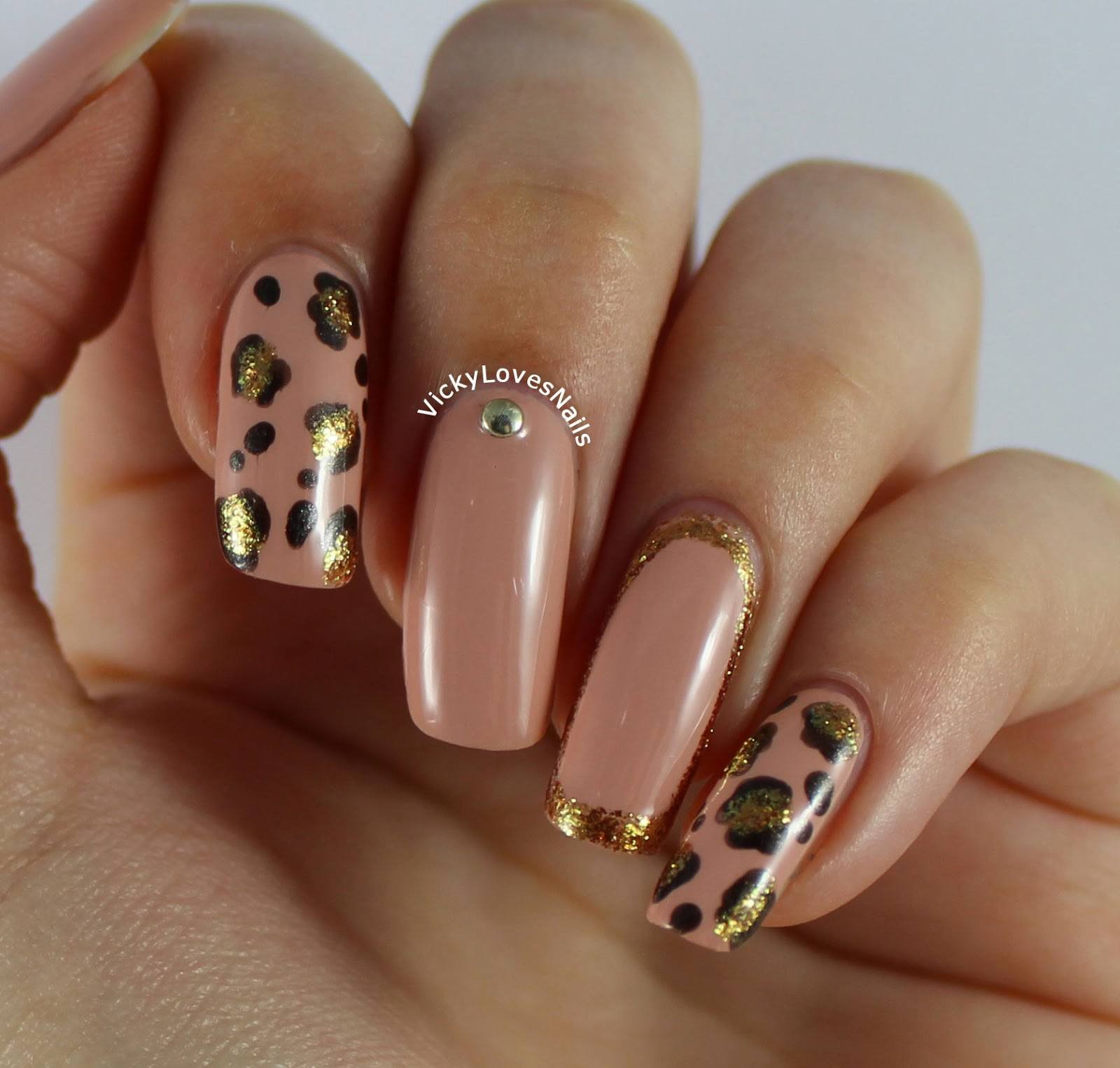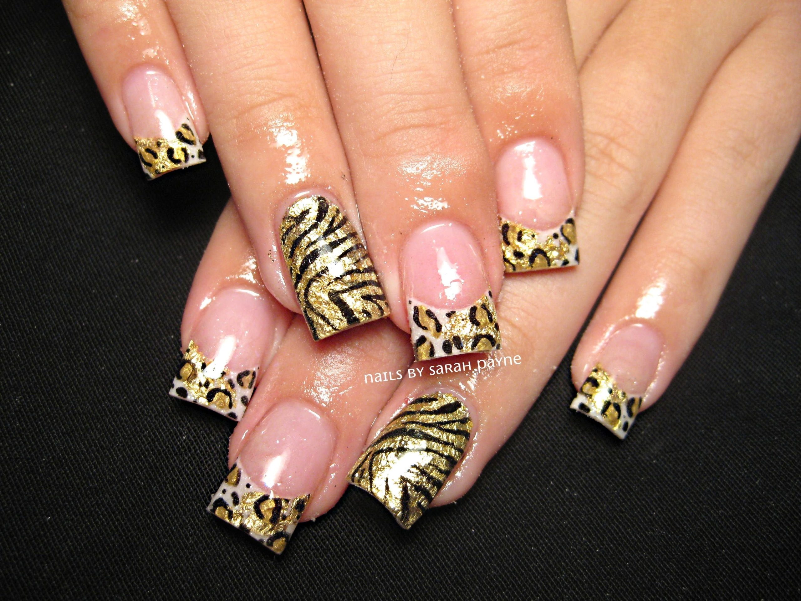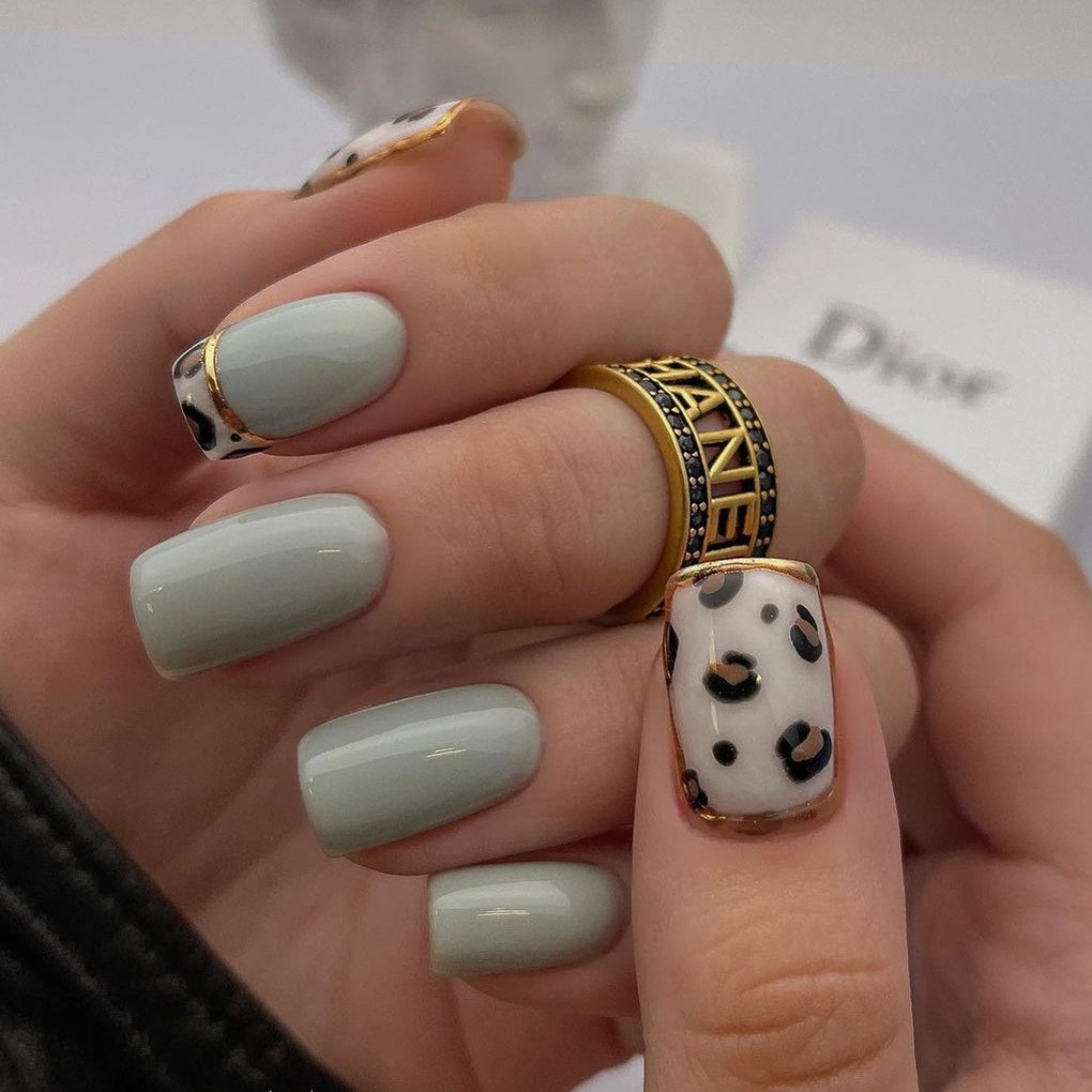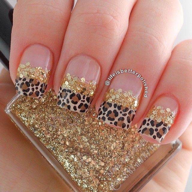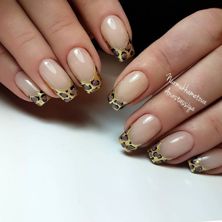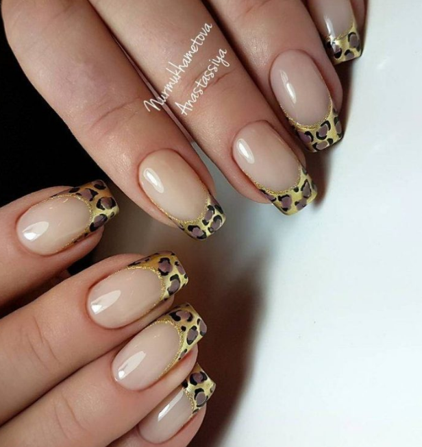 Нанесите небольшие элементы животных принтов на кончиках ногтей, используя золотой цвет.