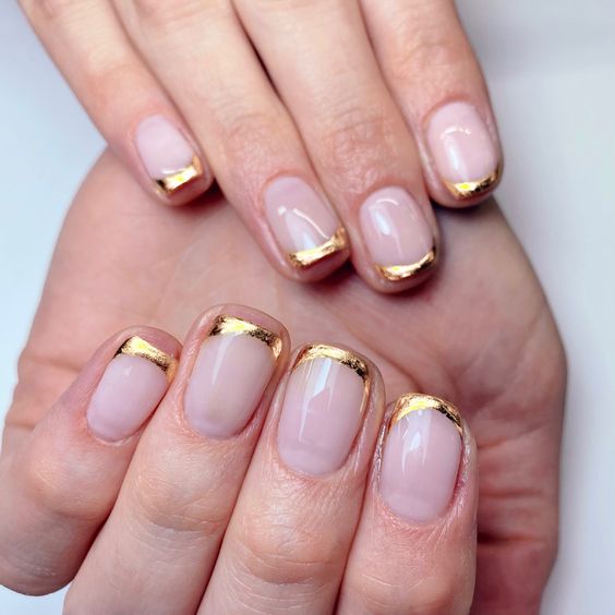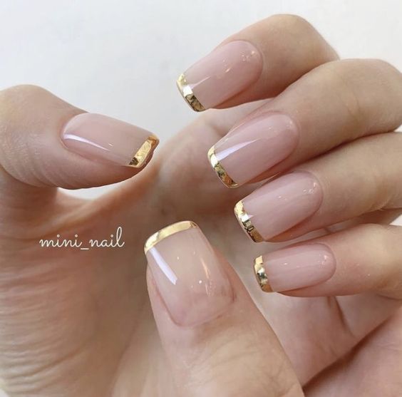 - тонкая френч-линия. Поскольку короткие ногти имеют меньше свободного пространства на кончиках, создайте тонкую и аккуратную линию золотого френча. Это поможет обеспечить элегантный и изящный образ, без чувства перегрузки;