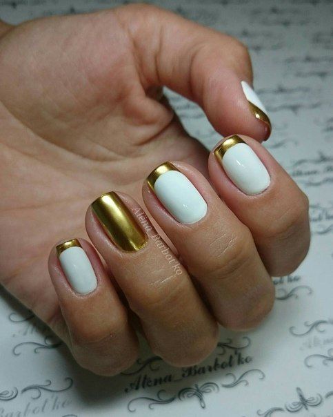 - Золотой френч с лунным маникюром