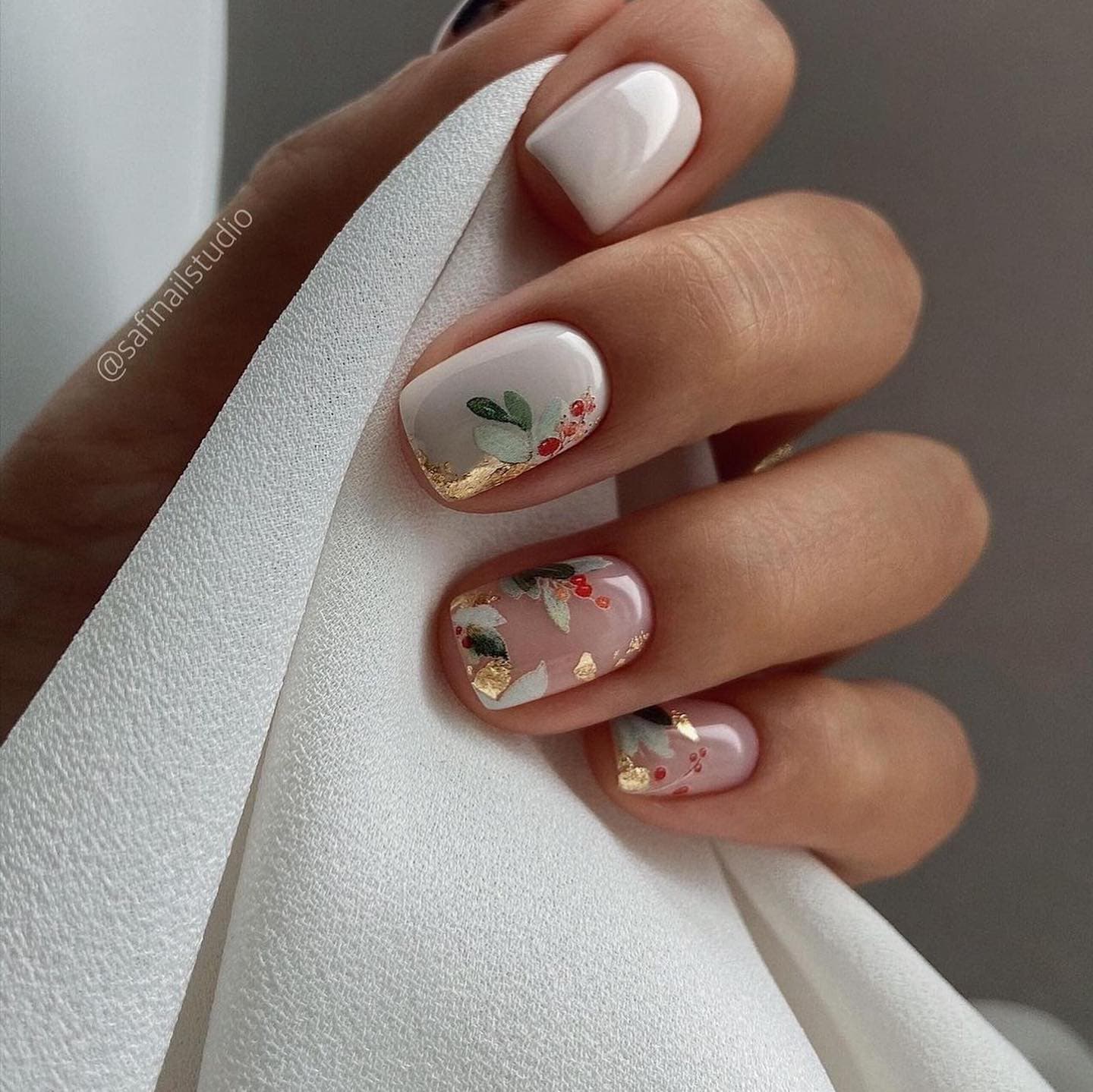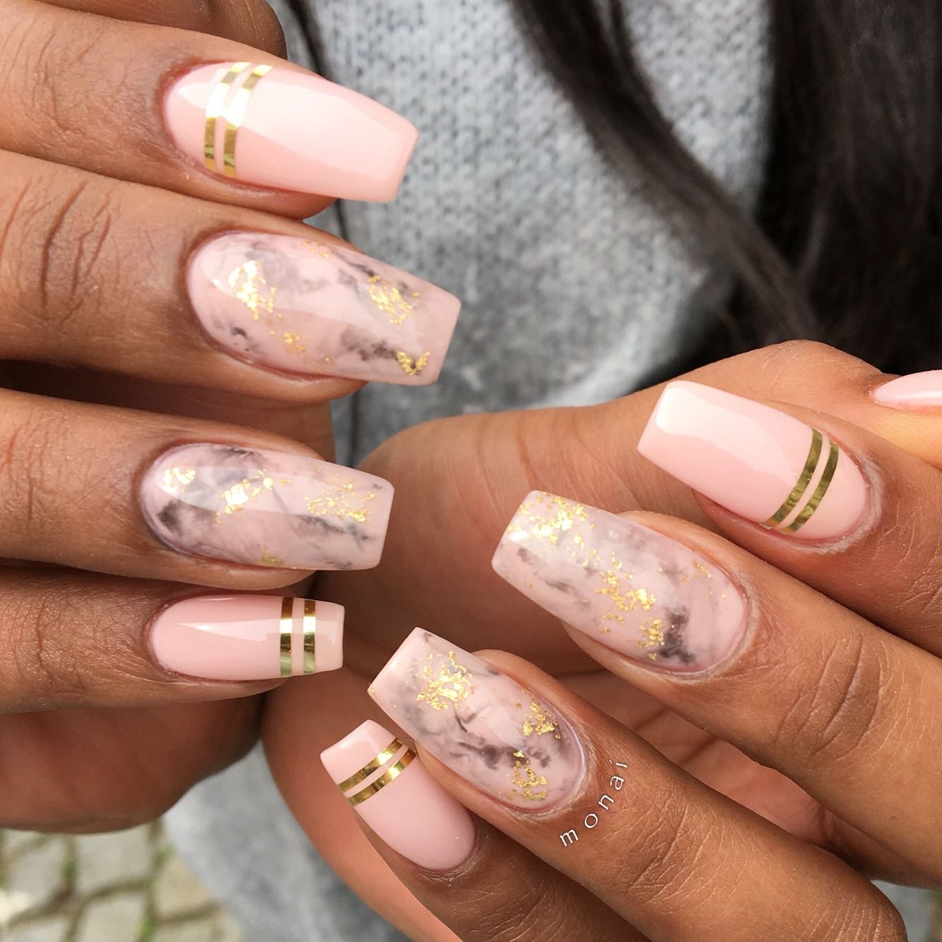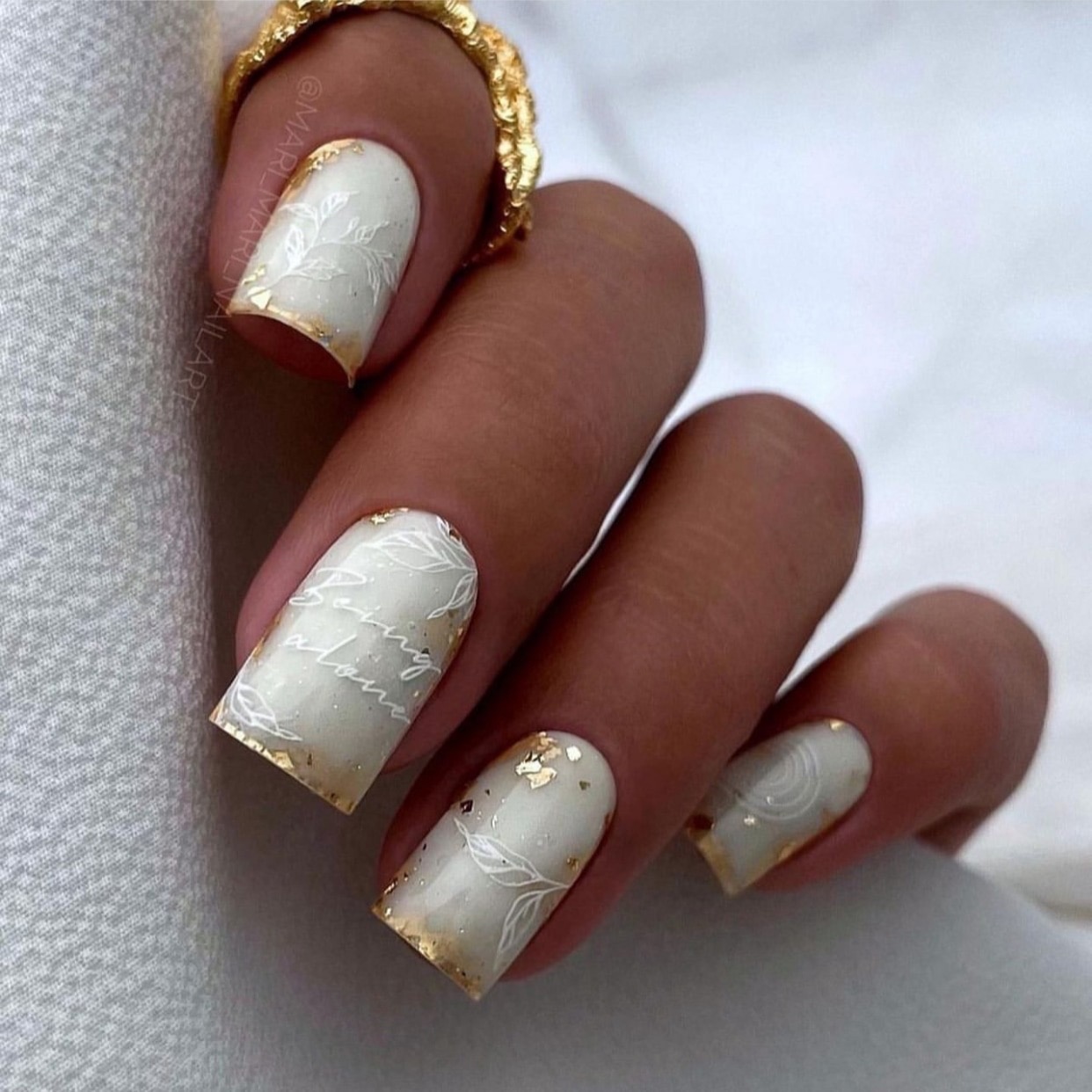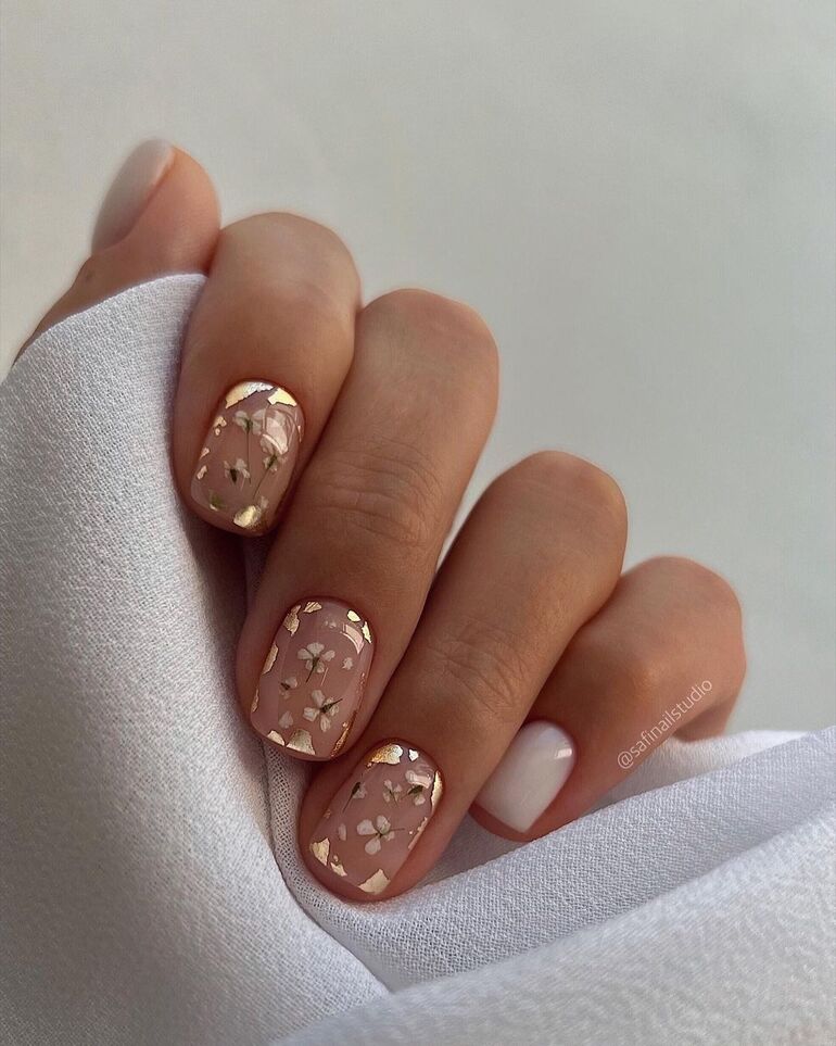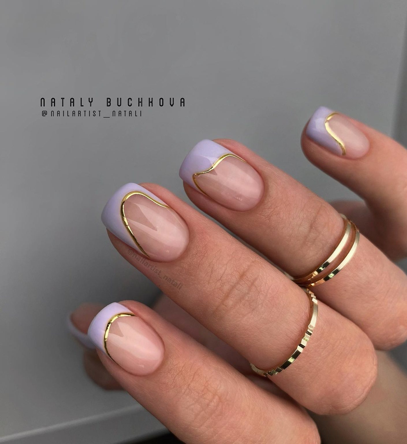 - фоновый цвет. Используйте светлый, нюдовый или пастельный цвет в качестве основного фона. Это поможет создать нежность и элегантность образа, делая акцент на золотой френч-линии;