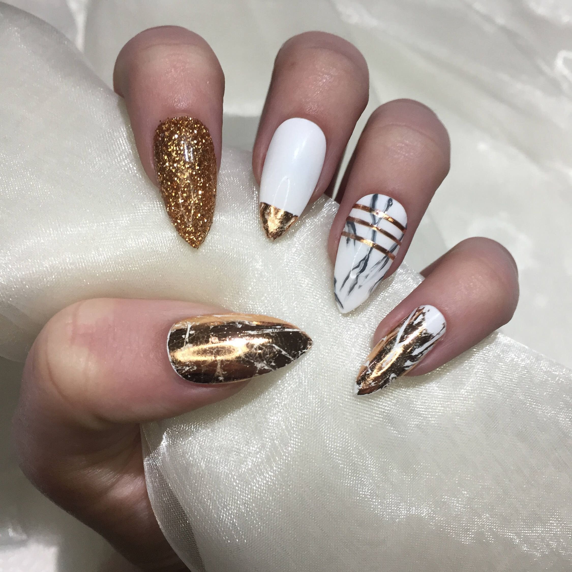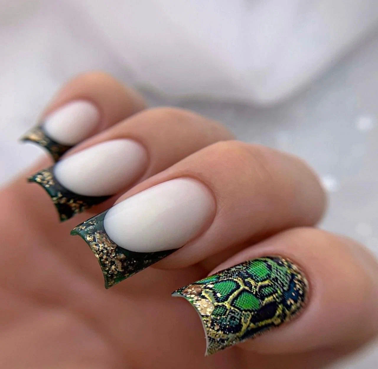 Френч с золотом на разную длину ногтей