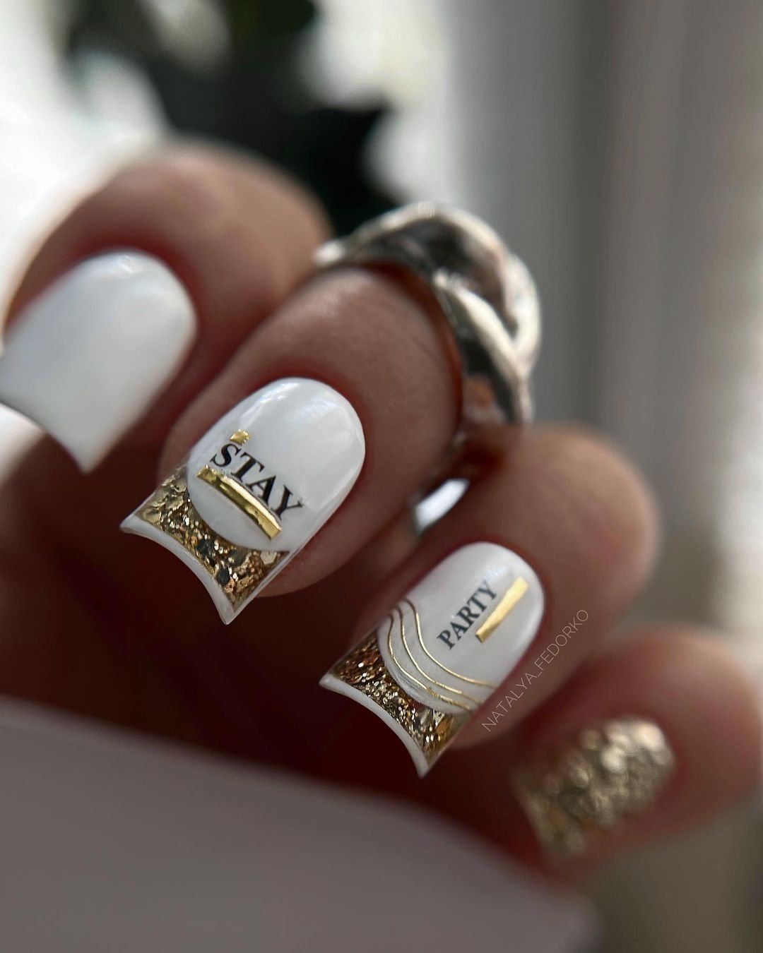 Золотой френч с лунным маникюром